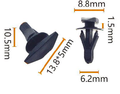 Nag -aalok ang set ng dalawang mga fastener sa natatanging laki. Ang diskarte sa sizing na ito ay sumasaklaw sa isang mas malawak na spectrum ng mga sitwasyon sa pag -install, tinitiyak na laging may tamang sukat sa kamay. Ang parehong mga fastener ay ginawa mula sa de-kalidad na itim na plastik, na may mga nakataas na mga seksyon ng sentro na nagpapaganda ng kanilang lugar ng contact na may katawan ng sasakyan, sa gayon pinapabuti ang katatagan ng pag-install. Bilang karagdagan, sila ay nilagyan ng mga butas ng tornilyo at mga sinulid na bahagi, pinadali ang mabilis at maaasahang pag -aayos gamit ang mga turnilyo o bolts.